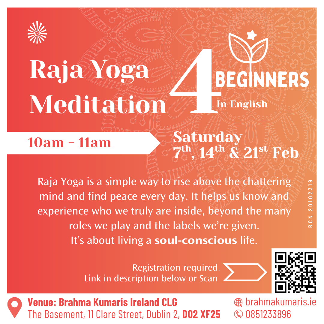 Raja Yoga Meditation Course in English for Beginners; provides a logical and practical understanding of the relationship between spirit and matter, as well as an understanding of the interplay between souls, God and the Material World. It's a time to reflect and bring about positive changes.
